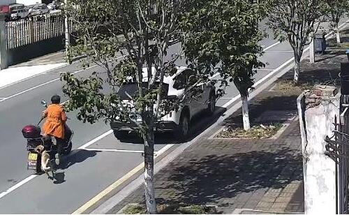 近日,在武陵区东郊工业园二号路路段,一女子边驾驶电动二轮车,边牵着狗绳遛狗。没想到,狗狗突然挣脱狗绳,导致骑车女子被拉拽后失去重心,左摇右晃地撞上了停在路边停车位的小车,将小车左侧划伤。事故发生后,该女子又继续牵着狗,驾车逃离了现场。