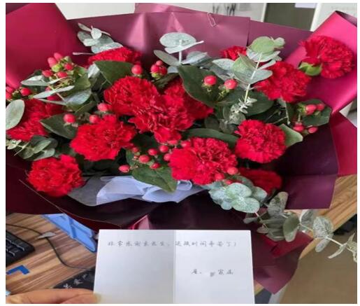 为了感谢袁友超及医护人员的悉心照顾,唐先生家属特意买了花束并留言:“非常感谢袁医生,这段时间辛苦了”致谢,这才有了文章开头的一幕。