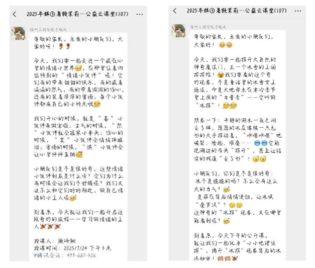 徐州工程学院青年志愿者协会携手公益伙伴在暑期推进“青心向党,云端青翼”助童计划,开展了内容丰富的云课堂活动。活动中,志愿者们精心准备了包括趣味地理课与心理健康课在内的多彩公开课:刘艺华老师在地理课上运用生动的比喻带领学生们探索冰锥等自然地理奇观,顾玮翔老师在心理课上则借助诙谐的视频与同学们互动,讲解不同情绪并引导大家成为情绪的主人。志愿者王志平表示:希望借助这些课程帮助孩子们开拓视野,增长知识,更好地认识世界与自我,培养积极健康的心理状态。