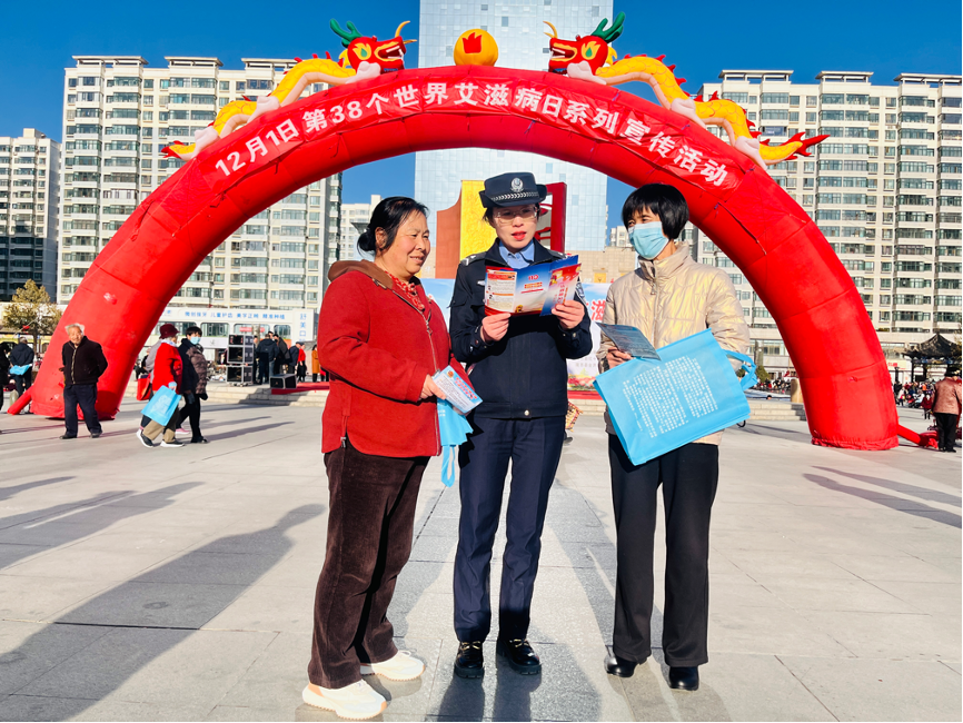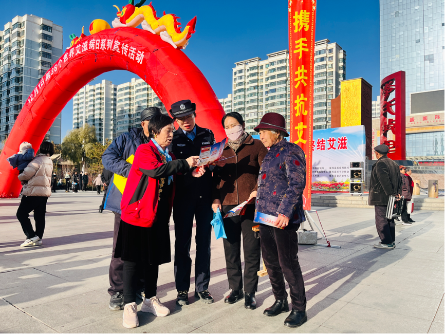 12月1日,世界艾滋病日陇西县公安局民辅警在人民广场开展法治宣传,提高群众自我保护意识和防范能力。(王婧)