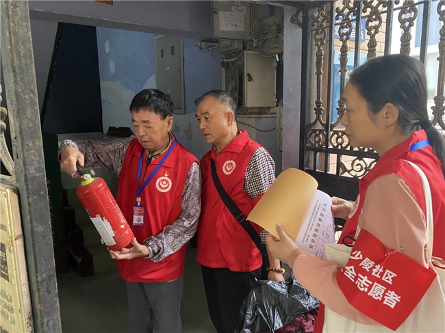 经过系统培训的志愿者迅速投入社区安全治理工作,自主组织开展4次全覆盖隐患排查行动,重点对居民楼消防通道畅通情况、消防器材完好度、电瓶车飞线充电现象,以及辖区培训机构、旅馆等场所的消防设施配备情况进行细致检查。排查中,志愿者对发现的问题逐一记录,现场能整改的立即协助处理,需专业部门解决的及时反馈社区与物业,建立“发现—跟踪—解决”的闭环管理机制,确保隐患整改落实到位。