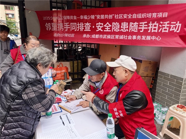 近日,成都市武侯区少陵社区“幸福少陵——‘安居共创’社区安全自组织培育项目”顺利完成阶段性目标,一支由15名居民组成的安全志愿者队伍正式“上岗”,累计排查整改社区安全隐患30余处,成为守护辖区居民平安的“移动防线”。