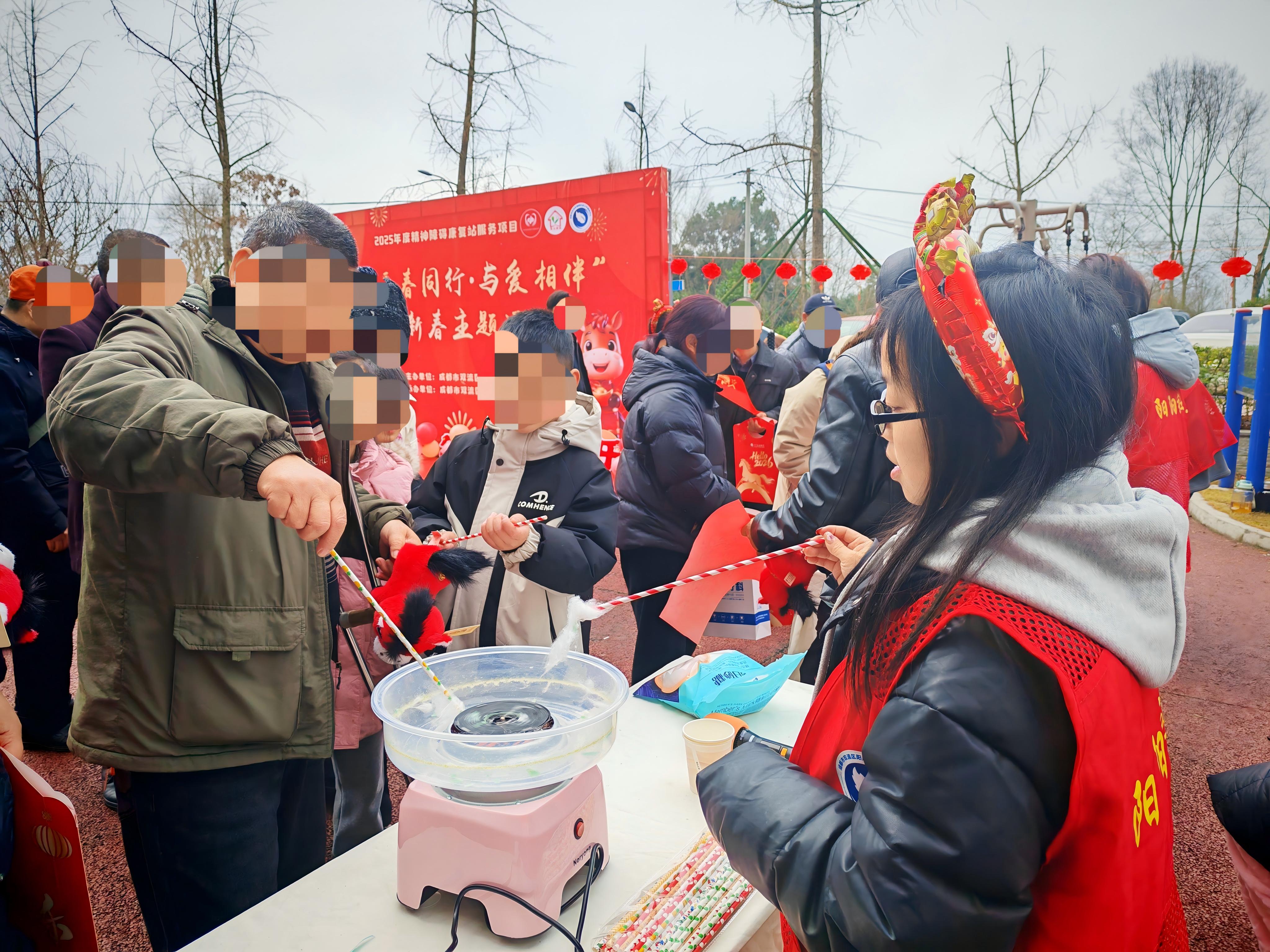 才艺展示结束后,充满欢声笑语的手工体验环节正式开启,该环节分为棉花糖制作体验与新春贴吉祥两部分,让参与者在动手实践中收获快乐与成就感。活动得到华美牙科、四川天府银行的大力支持,爱心企业携手发力,为活动注入更多温暖力量,用实际行动践行社会责任、传递公益温情。