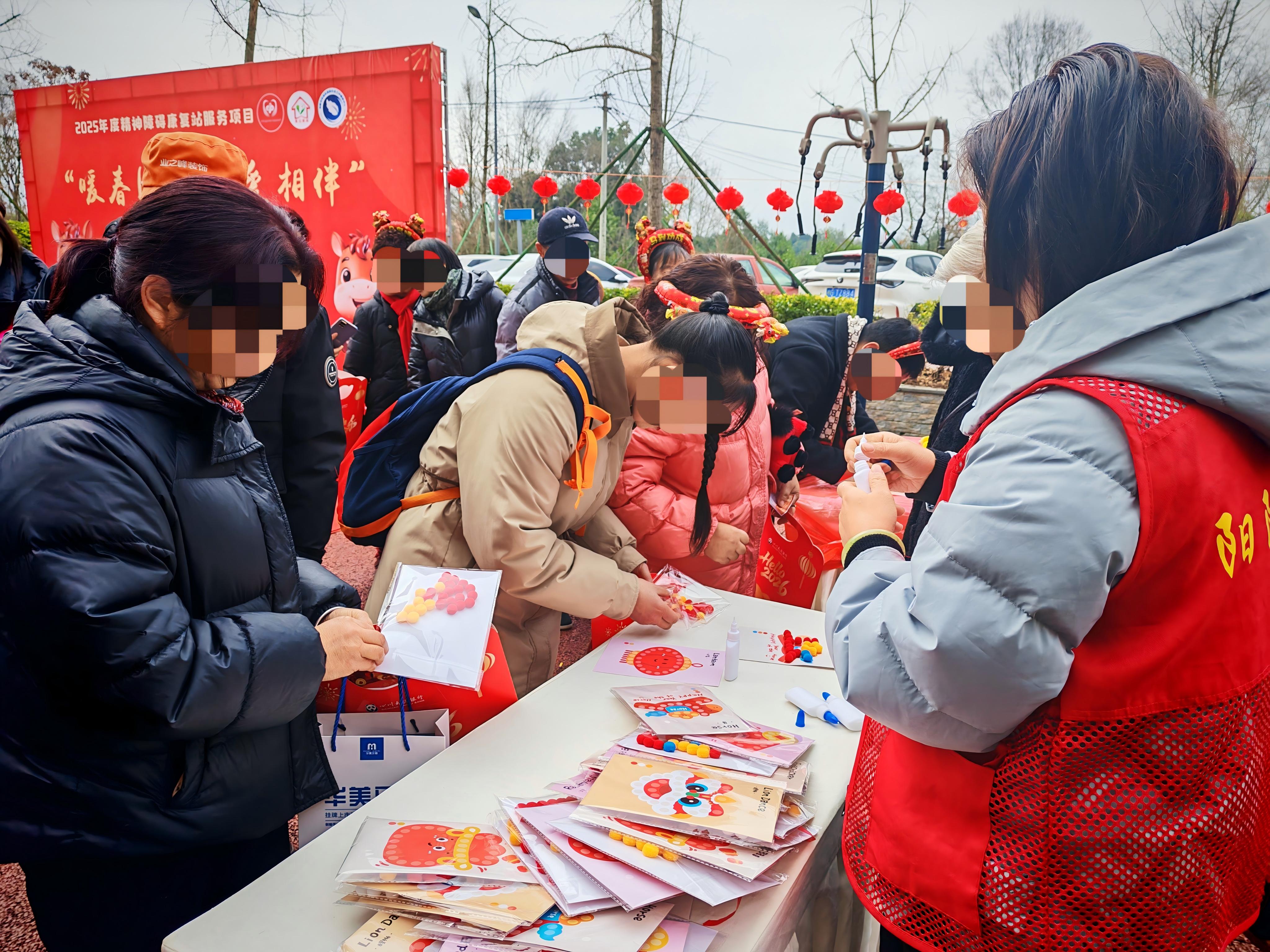 新春将至,温情渐浓。为切实落实社区康复服务理念,传递社会温情与人文关怀,帮助精神障碍康复者及其家属缓解节日期间的负面情绪,增强其自我价值感与社区归属感,让特殊群体度过一个温暖、祥和的新春佳节,2026年2月9日,黄水镇复元驿站组织开展“暖春同行·与爱相伴”新春主题活动,邀请康复者及其家属、辖区居民共同参与,以多元互动、暖心服务,为每一位参与者送上一份特殊而真挚的新春暖意。
