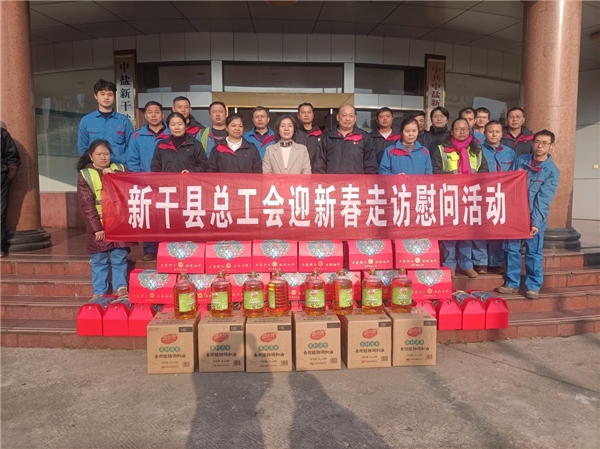 生产车间、项目工地、……无数一线职工在节前依然奋战在各行各业。随后慰问组深入S312新干赣江大桥危桥改造工程、江西赣酒酒业有限公司、江西赣齿传动有限公司、一个苹果有限公司、东骏达铝业有限公司、欧式化工有限公司、中意陶瓷化工有限公司、中盐新干盐化有限公司等,走访慰问坚守岗位的一线职工。在建设工地,慰问组为工友们送上了节日慰问品,嘱咐项目负责人要安排好春节期间留岗职工的生活,让大家即使在外也能感受到家一般的温暖。一句句暖心的话语,一份份贴心的礼物,让一线职工们倍感振奋,纷纷表示将把关怀转化为动力,尽职尽责完成好任务。在生产线上,慰问组查看了生产情况,对职工们的拼搏精神给予充分肯定,勉励大家站好节前最后一班岗,同时要注意劳逸结合,确保安全生产。