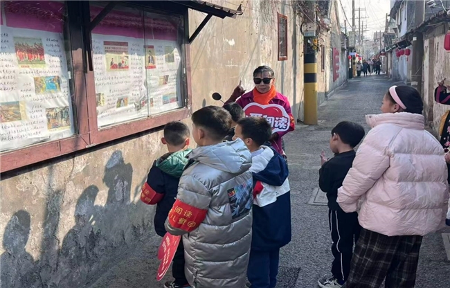 活动现场,实践队以“活阅读・探文脉”为主线,精心规划研学路线,带领孩子们先后走访西南营秋官第、钱素凡烈士故居等历史坐标,深入寺街百年巷弄,将研学课堂搬到烟火日常中。在秋官第,实践队邀请长者为孩子们介绍民俗年画,孩子们在精美传统纹样中读懂老城的文化记忆;实践队还开展“活阅读”主题互动,孩子们围坐成圈积极参与,在趣味活动中深化对老城文脉的理解。走进钱素凡烈士故居,红色旧址中的珍贵物件与动人故事,让孩子们在追忆初心使命中接受红色精神洗礼,厚植爱国情怀。