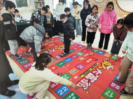 图为志愿者与社区小朋友共同进行真人大富翁环节。吴阳供图